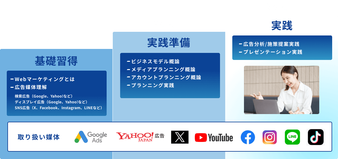 ただWeb広告運用ができるようになるのではなく、広告主の目標売上とビジネスモデルを理解をしたうえで、