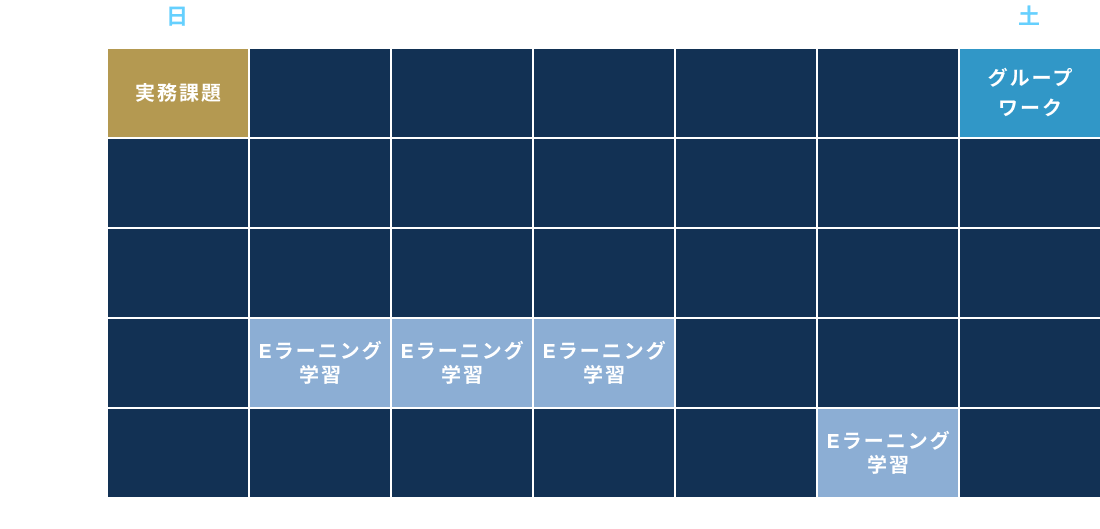 同時期に入学したメンバーと、実務的な課題をもとにしたグループワークを実施。互いの知見を出し合うなどの、学習モチベーションの維持が可能です。