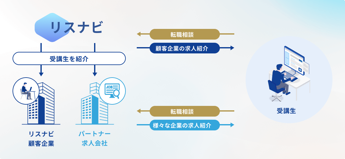 多くの実績と成果の背景には、当社の教育プログラムによる人材の成長があります。そのノウハウを提供し、長年の広告代理事業で培ったネットワークを活かして、事業主や代理店を中心に、皆様のキャリアビジョンに沿った転職先を紹介し、転職成功までサポートします。
